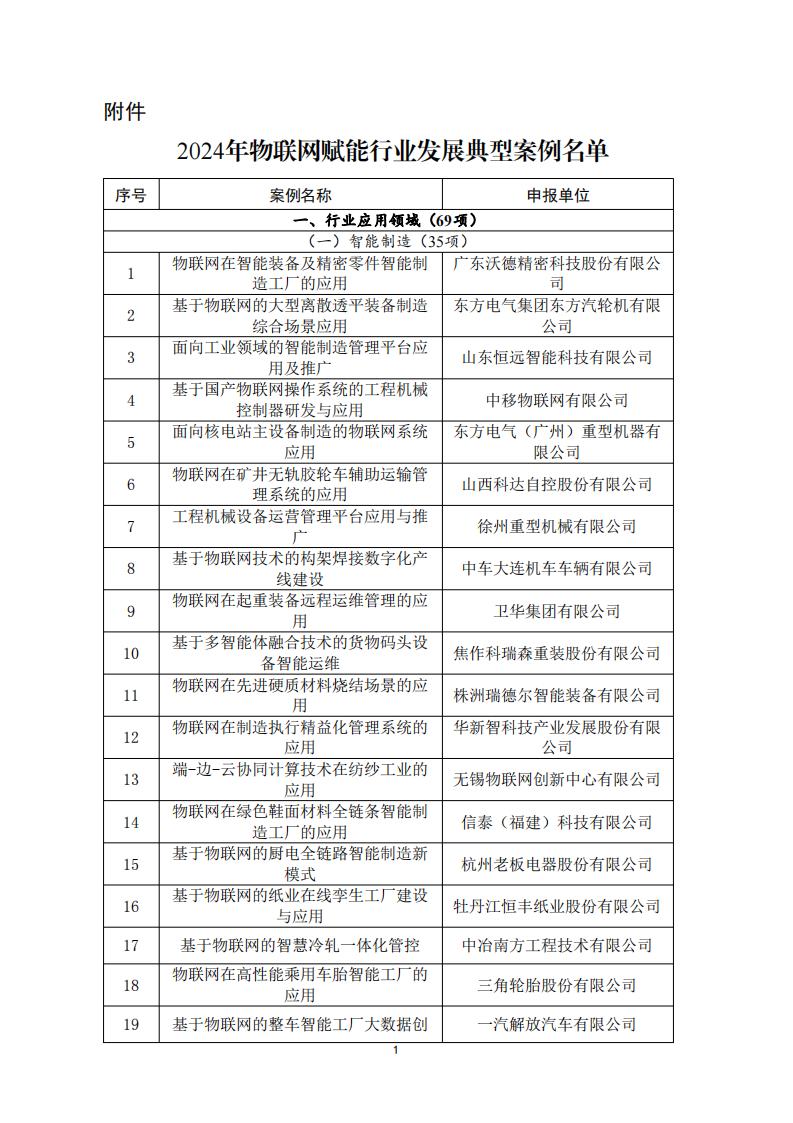 工信部|關于公布2024年物聯網賦能行業發展典型案例名單的通知